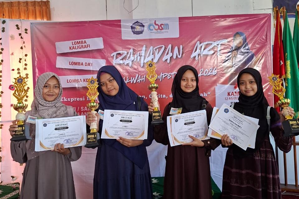 Malang – Prestasi membanggakan kembali diraih oleh siswa-siswi MBS SMP Muhammadiyah 06 Dau dalam ajang Ramadan Art “Dakwah Competition 2026” yang diselenggarakan oleh SMA ABSM Lawang. Kompetisi yang digelar dalam rangka menyemarakkan bulan suci Ramadan ini diikuti oleh berbagai pelajar dari tingkat SMP/MTs di berbagai sekolah. Dalam ajang tersebut, siswa MBS SMP Muhammadiyah 06 Dau berhasil meraih beberapa penghargaan di berbagai cabang lomba, 15/3/2026.